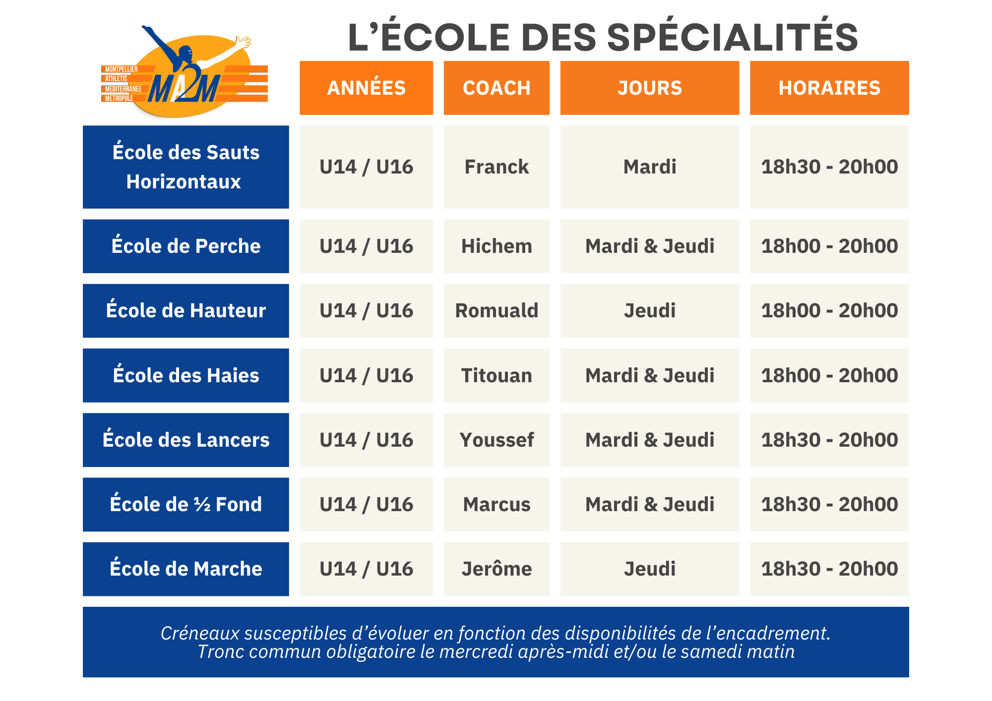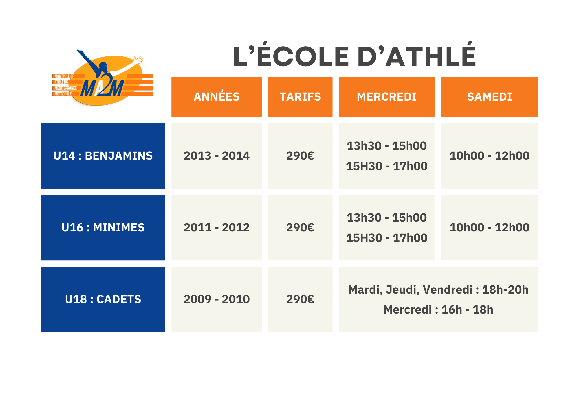 Cette saison, le MA2M travaille en partenariat avec un foyer d’accueil et deux IME (Instituts Médico-Éducatifs), permettant à près de 40 participants de s’initier aux différentes disciplines de l’athlétisme. Ces séances se tiennent au Stade Philippides, un lieu accessible et convivial, en milieu d’après-midi, de 14h à 15h, dans une atmosphère propice à l’échange et à la progression.