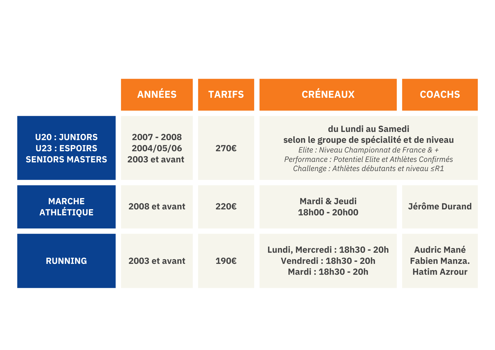 - Intégration dans des groupes d’entraînement de qualité, orientés vers la performance, avec une vision commune et cohérente.