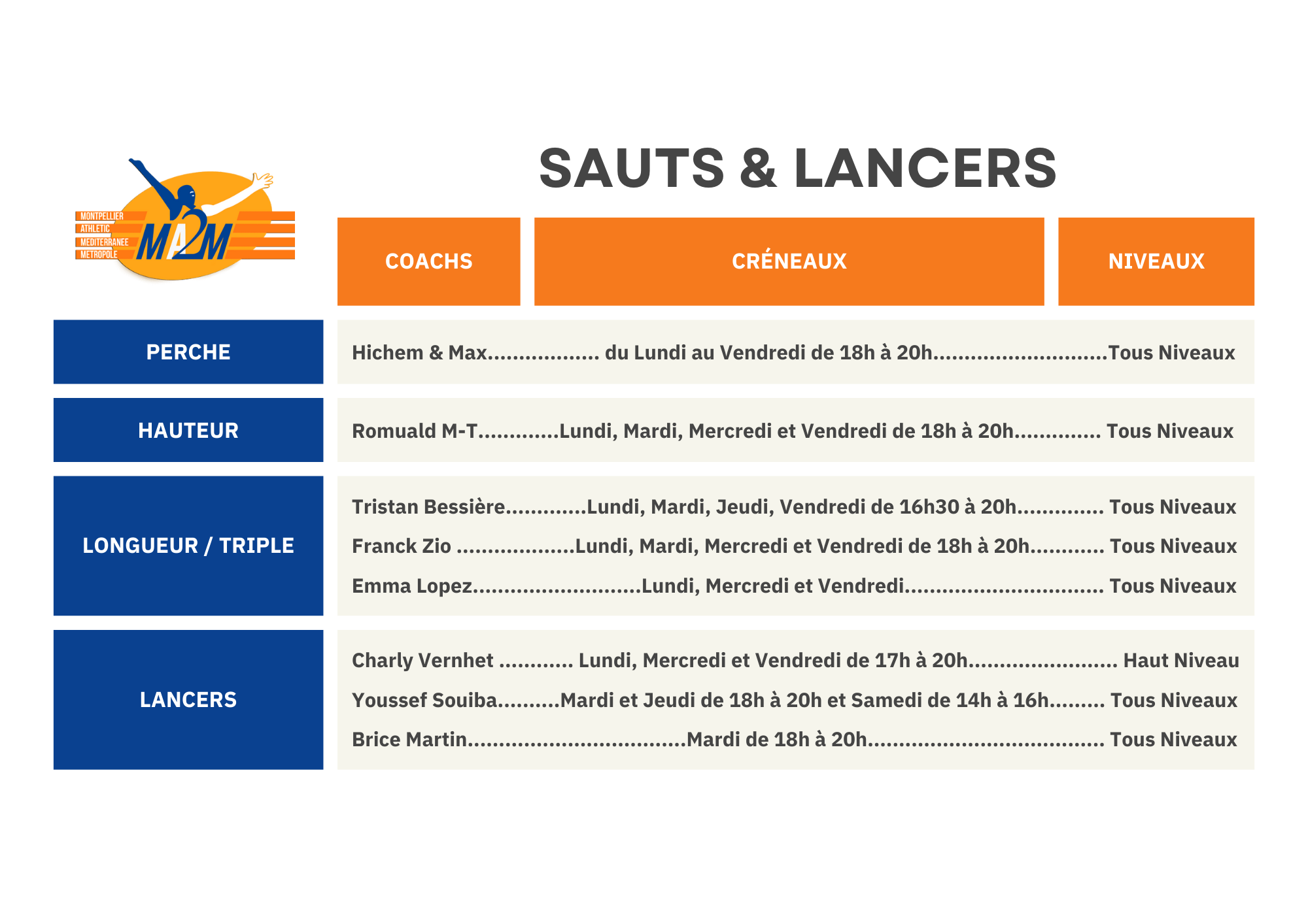 Le Centre de Formation d’Athlétisme de Montpellier est une structure permanente d’entraînement dédiée aux athlètes à fort potentiel. Il accueille des athèles du club, mais également d’autres clubs du département, de la région et même au-delà.
