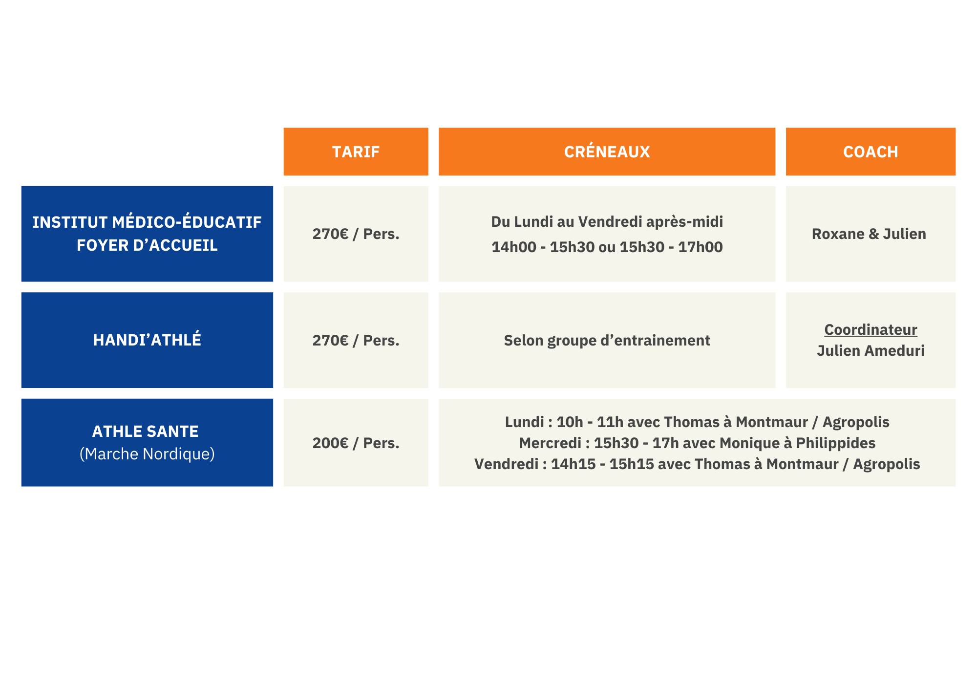 - Découverte et plaisir : Offrir une initiation ludique aux fondamentaux de l’athlétisme, à travers des activités adaptées aux besoins et capacités de chaque participant.